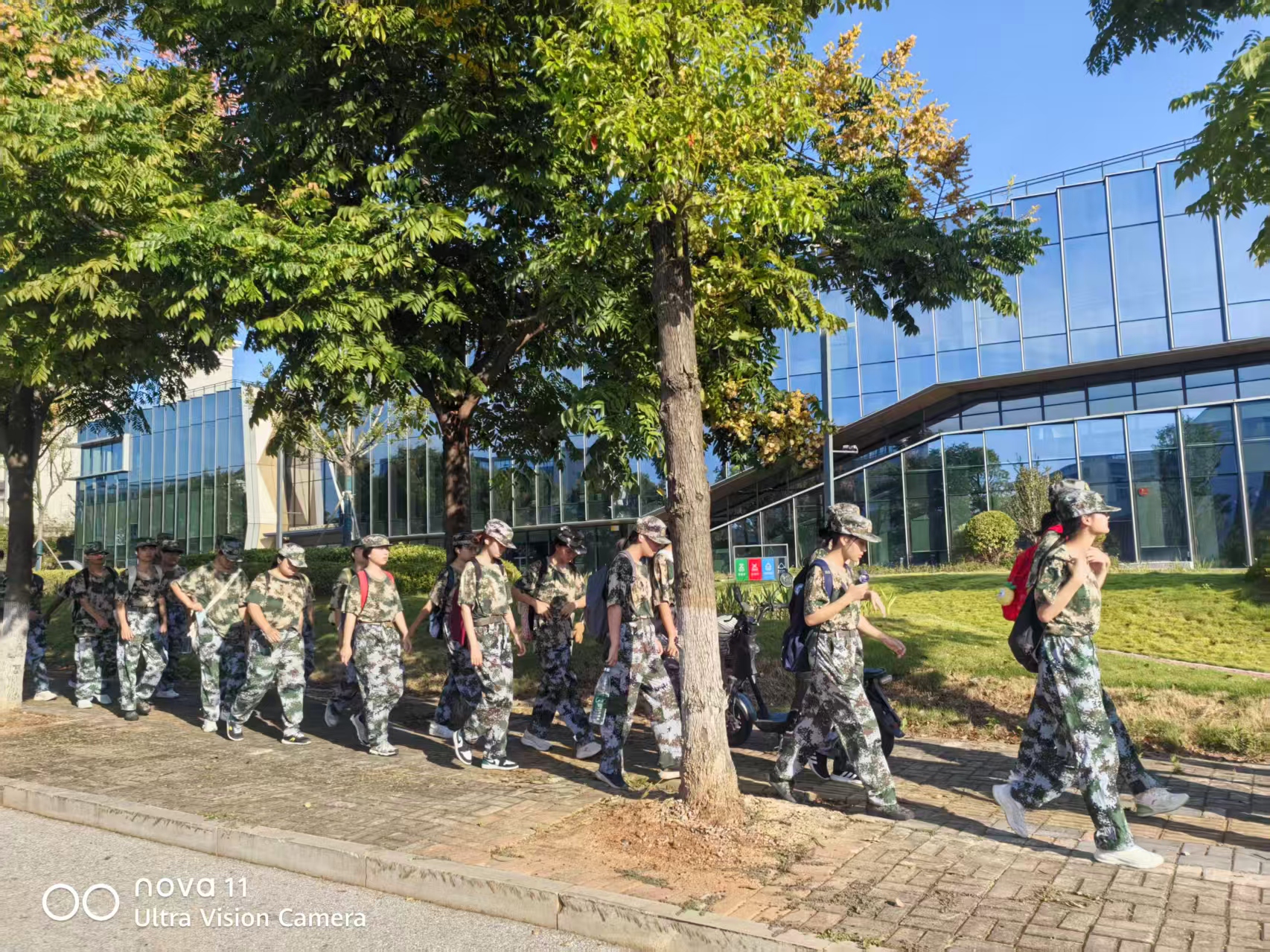 10公里拉练活动中,新生们以班级为单位,沿指定路线徒步前行,途中相互扶持、彼此鼓励,不仅挑战了身体极限,更在并肩前行中加深了同学情谊,锤炼了“不畏艰难、团结协作”的奋斗精神。
