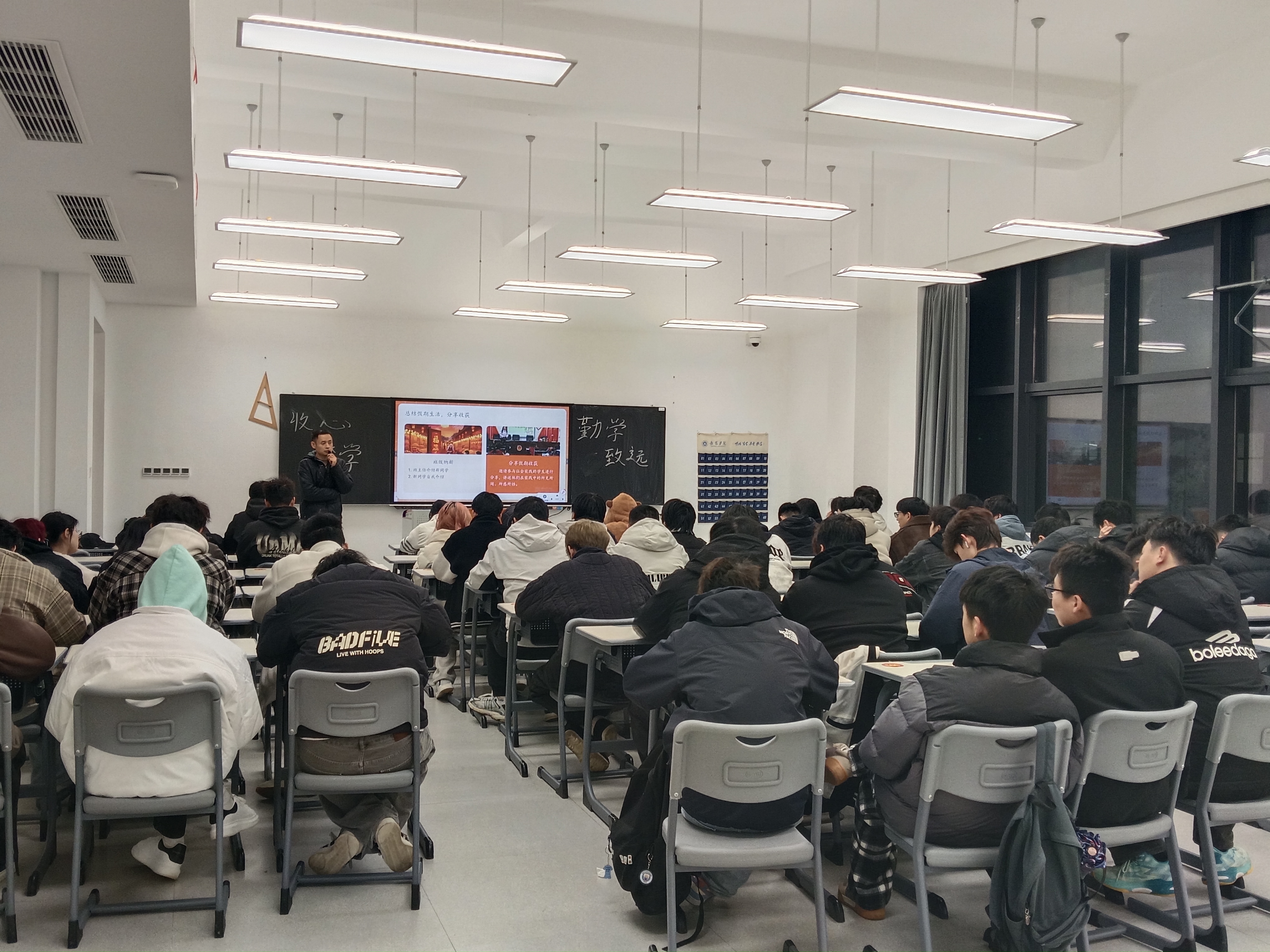 主题班会上,各班班主任、辅导员结合专业实际精准施策。“节后收心”以趣味动助学生摆脱假期惰性,快速切换学习状态;针对补考学生,逐科梳理重难点、解读考试要求,组建“一对一”帮扶小组。学风建设上,重申课堂纪律“红线”,明确出勤与学业、评优关联,倡导自主学习与师生互动。宿舍管理聚焦卫生、用电安全等,以正反案例强化“文明寝室共建”理念。安全教育板块“以案说法”拆解诈骗套路、普及防骗技巧,强调网络言行边界。学业计划分享环节,同学们围绕专业学习、考证、考研就业等交流思路,氛围热烈。一系列务实内容,为学子新学期成长精准导航。